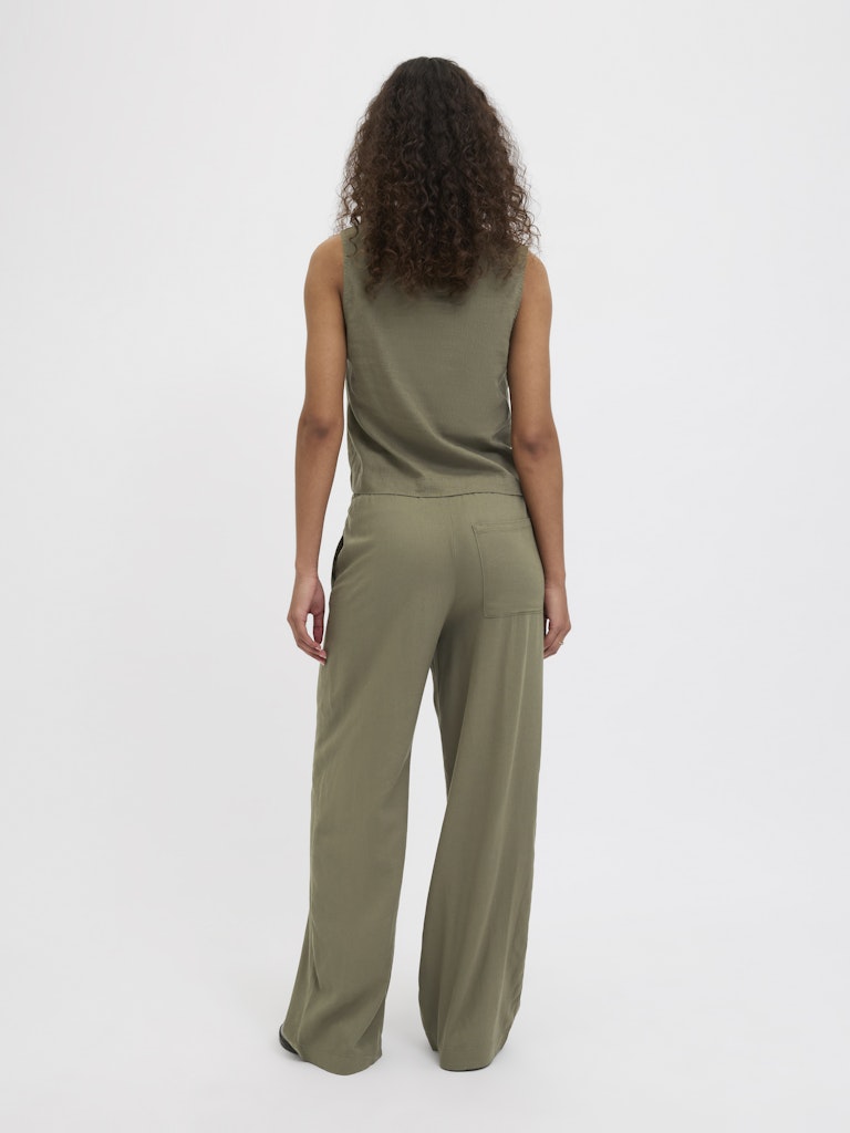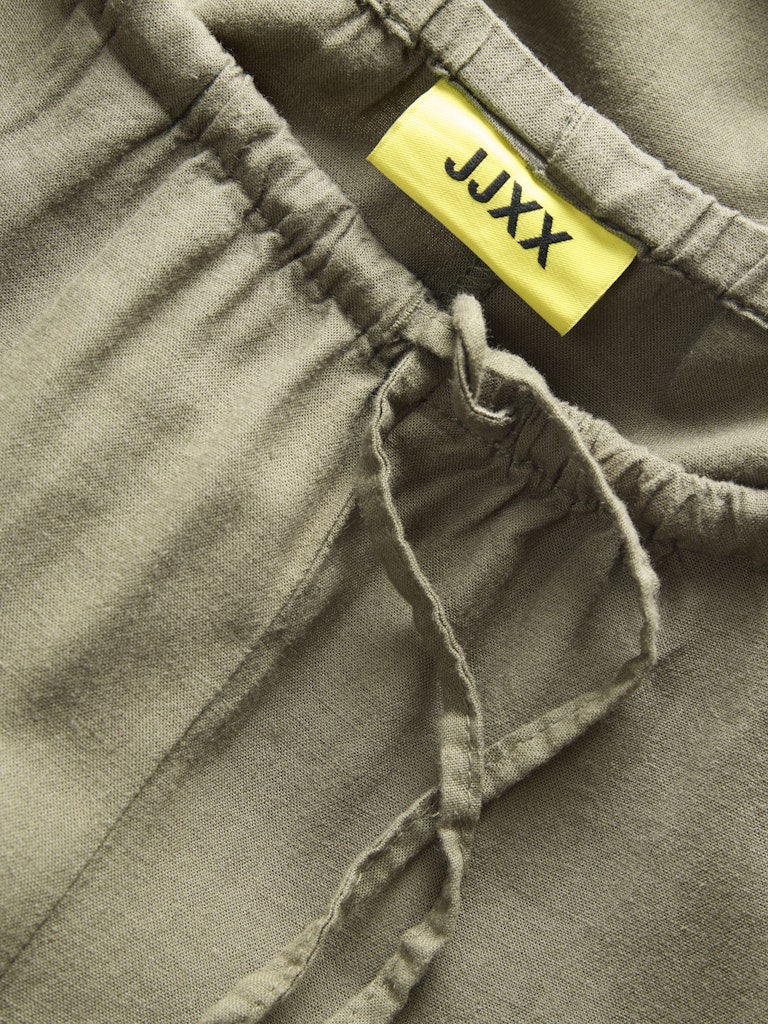 Η απόλυτη επιλογή για άνεση και δροσιά τις ζεστές μέρες. Αυτό το λινό παντελόνι σε χαλαρή γραμμή και φυσικό λαδί τόνο είναι φτιαγμένο για καθημερινές, effortless εμφανίσεις. Με ελαστική μέση και κορδόνι για άψογη εφαρμογή, σου προσφέρει στιλ και ελευθερία κινήσεων σε κάθε βήμα.