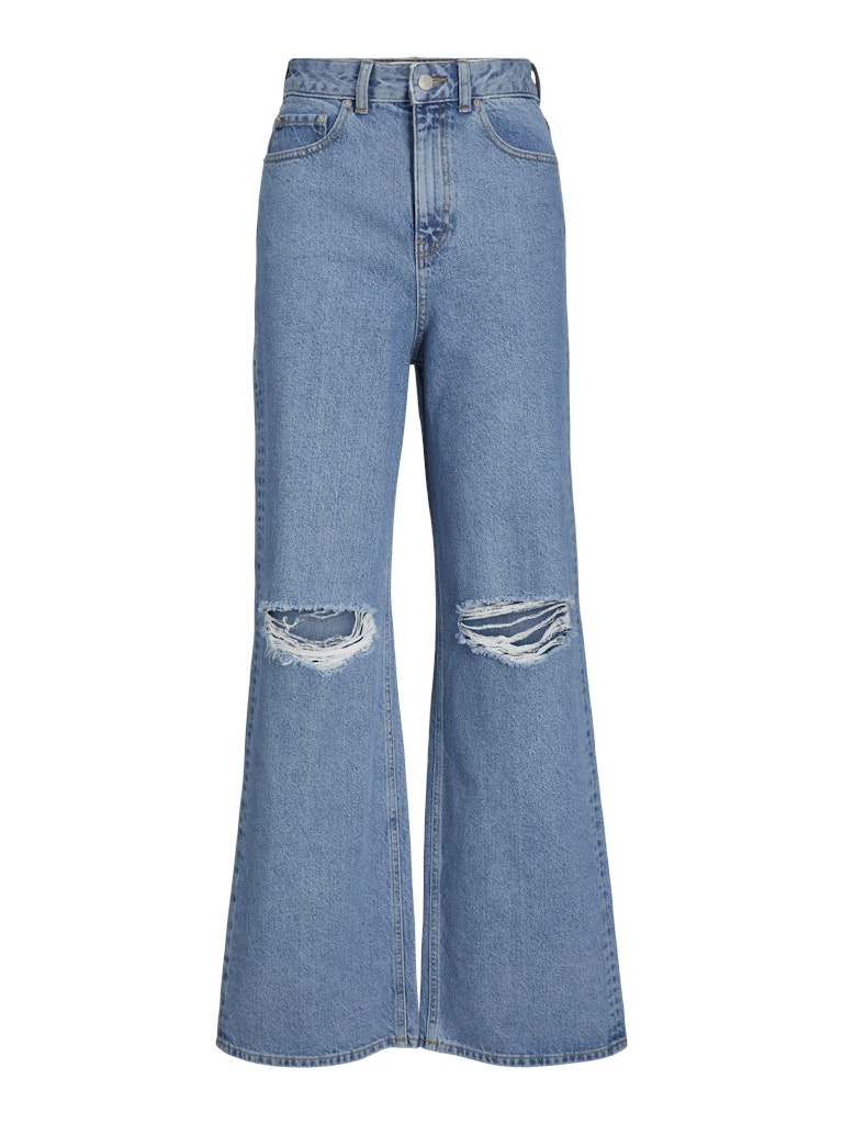 Το statement κομμάτι που χρειάζεσαι για cool εμφανίσεις με ρετρό αύρα. Αυτό το wide leg τζιν σε blue denim απόχρωση με σκισίματα στα γόνατα, προσφέρει άνεση και δυναμισμό. Ψηλόμεσο και με φαρδιά γραμμή, τονίζει τη σιλουέτα ενώ δίνει χαρακτήρα σε κάθε outfit.
