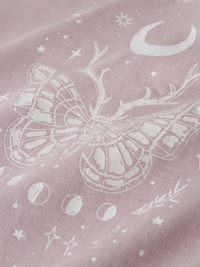 - Glitter print στην πλάτη με θέμα “Cosmic Vibes”