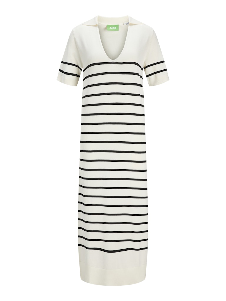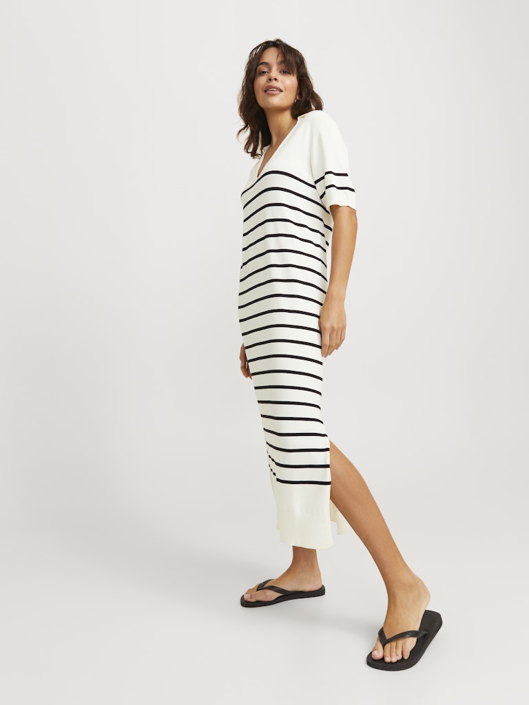 Το πλεκτό μακρύ φόρεμα JJXX με ρίγες είναι η απόλυτη καλοκαιρινή πρόταση για άνεση και στυλ σε ένα. Με ριχτή εφαρμογή, ύφασμα που αγκαλιάζει ελαφρώς το σώμα και γιακά μοντέρνο V ντεκολτέ, αποπνέει χαλαρή κομψότητα. Οι λεπτές οριζόντιες ρίγες και το ύψος midi κάνουν το κομμάτι ιδανικό τόσο για καθημερινές εμφανίσεις όσο και για απογεύματα στην πόλη ή το νησί.
