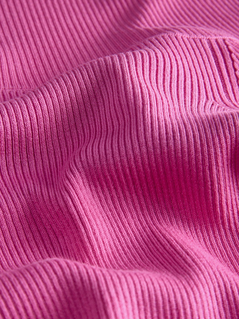 Το ribbed ύφασμα αγκαλιάζει το σώμα, προσφέροντας εφαρμοστή και κομψή γραμμή, ενώ τα μακριά μανίκια και το cropped μήκος δίνουν μια δυναμική και trendy αισθητική. Η ζωντανή ροζ απόχρωση κάνει τη μπλούζα να ξεχωρίζει, αποτελώντας ιδανική επιλογή για fashion-forward εμφανίσεις.