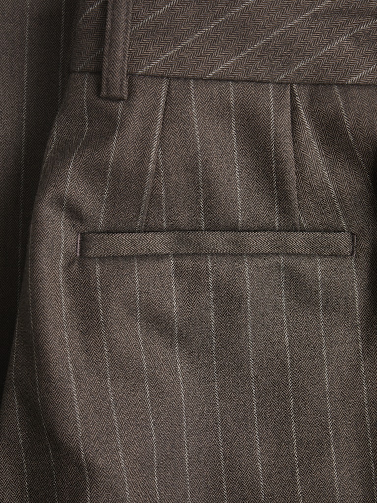 Η καφέ βάση σε συνδυασμό με το λεπτό ριγέ σχέδιο δίνει ένα sophisticated χαρακτήρα, ενώ η tailored κατασκευή το καθιστά ιδανικό για εμφανίσεις από το γραφείο μέχρι μια βραδινή έξοδο. Ένα κομμάτι που μπορεί εύκολα να γίνει βασικό στοιχείο της σύγχρονης γυναικείας γκαρνταρόμπας.