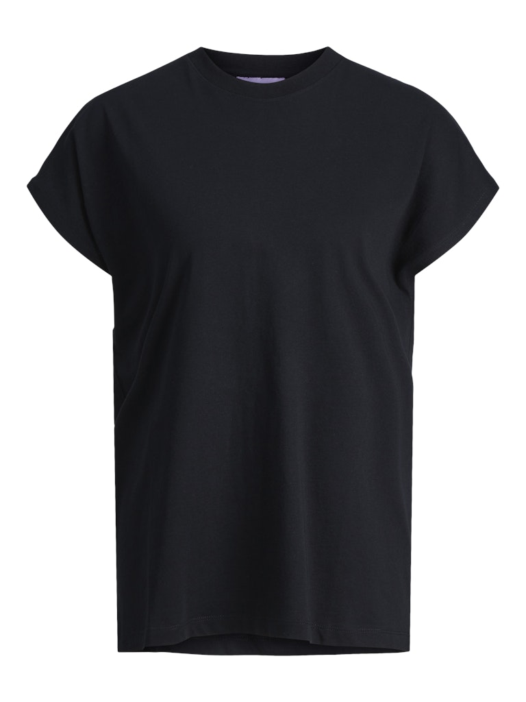 Η στρογγυλή λαιμόκοψη και τα κοντά μανίκια με ελαφρώς γυρισμένο τελείωμα προσθέτουν μια μοντέρνα πινελιά, ενώ το μαλακό ύφασμα εξασφαλίζει άνεση όλη την ημέρα. Το κλασικό μαύρο χρώμα το κάνει εξαιρετικά ευέλικτο, καθώς μπορεί να συνδυαστεί εύκολα με κάθε στυλ και χρώμα.