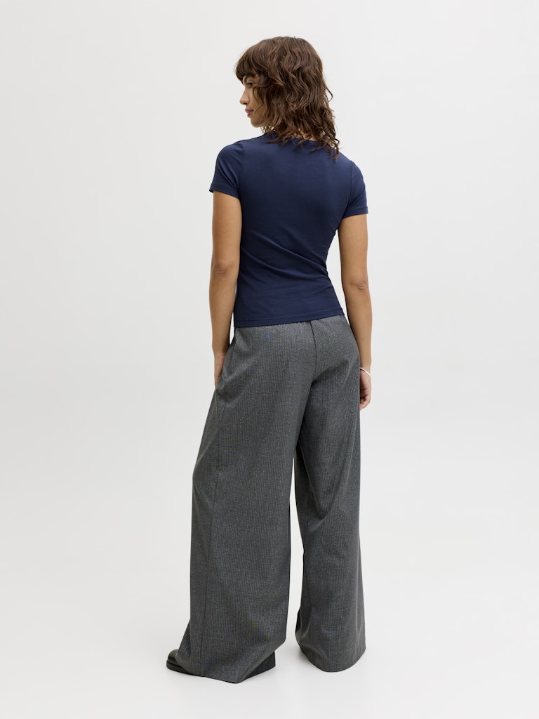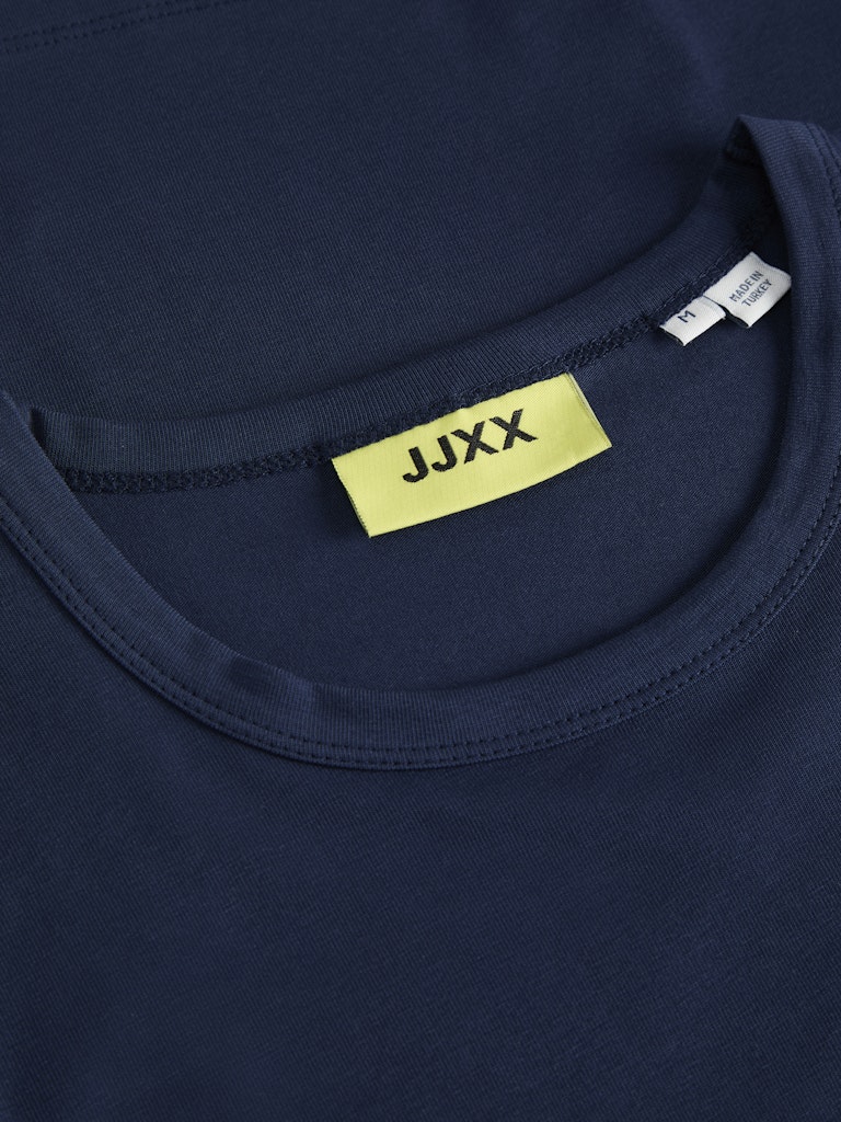 Το γυναικείο basic t-shirt JJXX σε navy μπλε χρώμα είναι ένα απαραίτητο κομμάτι για κάθε καθημερινή γκαρνταρόμπα. Ο minimal σχεδιασμός του το καθιστά εξαιρετικά ευέλικτο, ενώ η slim εφαρμογή αγκαλιάζει το σώμα και προσφέρει κομψή και θηλυκή σιλουέτα.