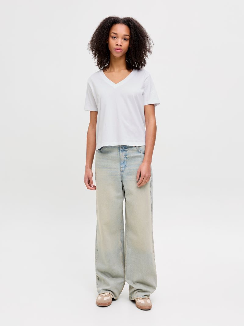 Η basic λευκή μπλούζα JJXX με V λαιμόκοψη είναι ένα από τα κομμάτια-κλειδιά της γκαρνταρόμπας. Κομψή και ευκολοφόρετη, κατασκευασμένη από μαλακό ύφασμα που αγκαλιάζει το σώμα και αναπνέει, αποτελεί ιδανική βάση για layering ή για αυτόνομες εμφανίσεις με καθαρή, minimal αισθητική. Η γραμμή της χαρίζει διακριτική κομψότητα χωρίς προσπάθεια.