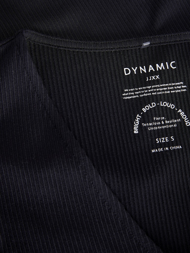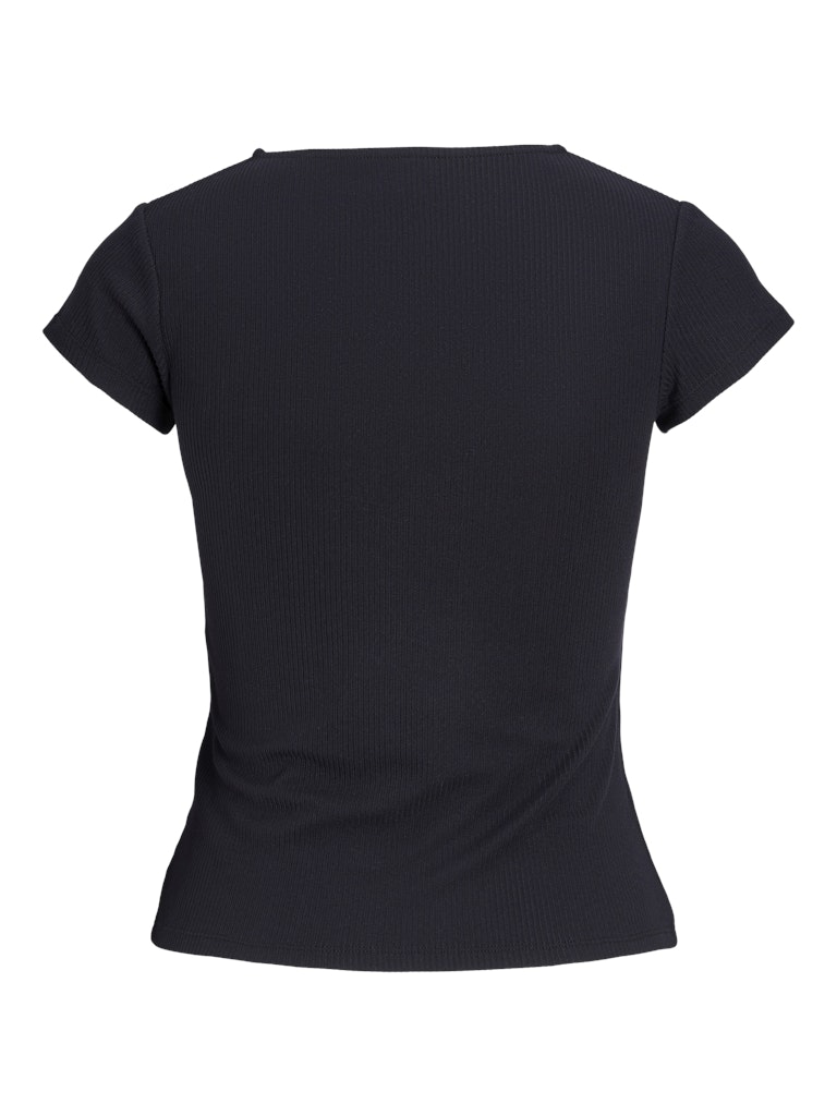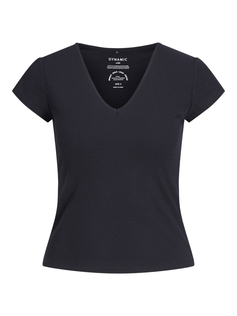 Μαύρο rib t-shirt JJXX με V λαιμόκοψη, σε εφαρμοστή γραμμή από βαμβάκι με ελαστάνη.