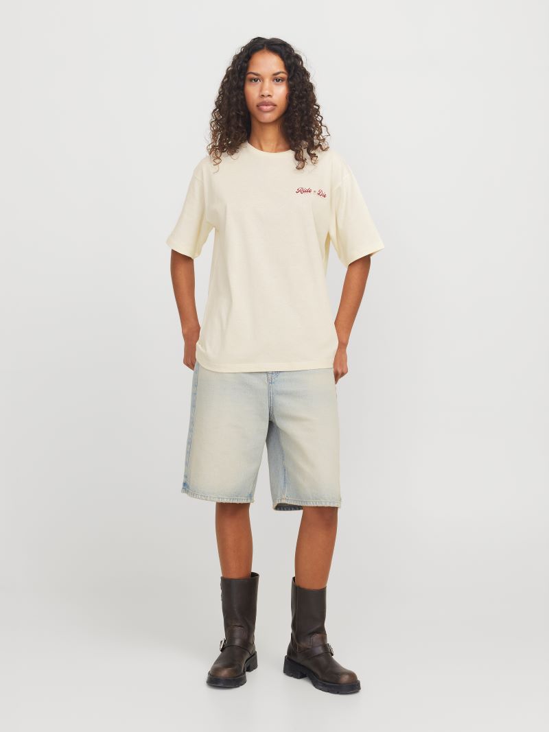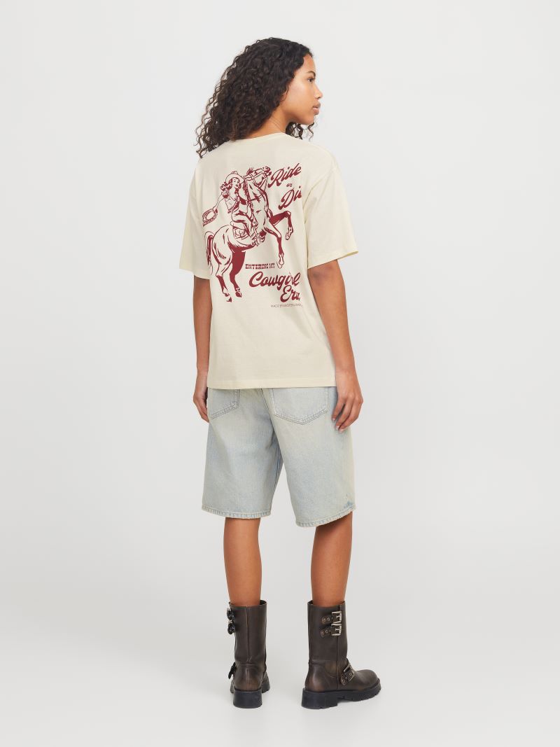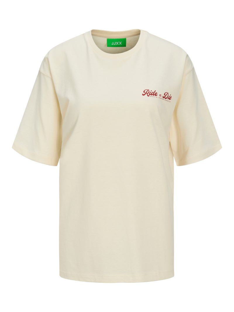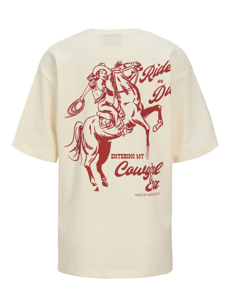 Το “Ride or Die” T-shirt της JJXX είναι εμπνευσμένο από την αισθητική της Δύσης και ξεχωρίζει για τη χαρακτηριστική του στάμπα στην πλάτη. Με φαρδιά γραμμή, χαμηλό ώμο και μαλακό βαμβακερό ύφασμα, συνδυάζει άνεση και χαρακτήρα. Το ανοιχτό, ουδέτερο χρώμα το καθιστά εύκολο στο styling, ενώ η ελαφρώς ρετρό εικονογράφηση προσθέτει attitude και cool vibes σε κάθε εμφάνιση.