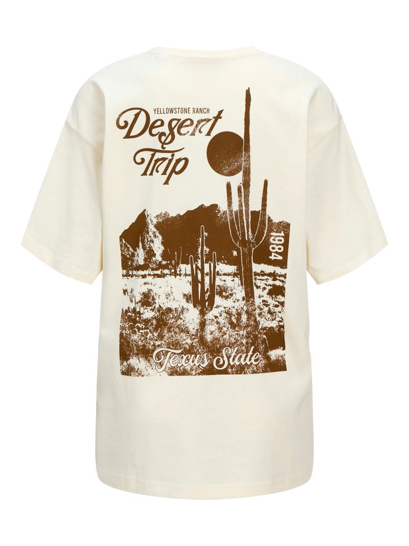 Ανακάλυψε το T-shirt Desert Trip της JJXX — ένα κομμάτι με ρετρό αναφορές και ανεπιτήδευτο cool χαρακτήρα. Με στάμπα εμπνευσμένη από road trips στην αμερικανική έρημο και boxy γραμμή που προσφέρει άνεση, αυτή η μπλούζα είναι ό,τι χρειάζεσαι για καθημερινό στυλ με προσωπικότητα. Το απαλό εκρού χρώμα και το vintage print στην πλάτη συνδυάζονται ιδανικά με κάθε basic ή statement κομμάτι της γκαρνταρόμπας.
