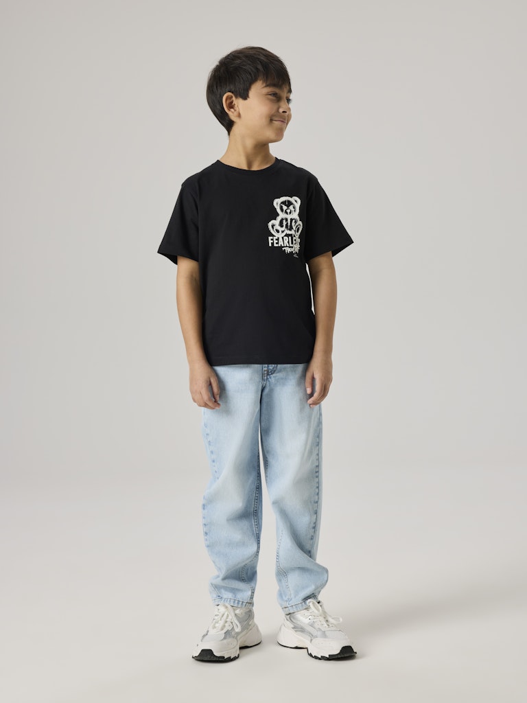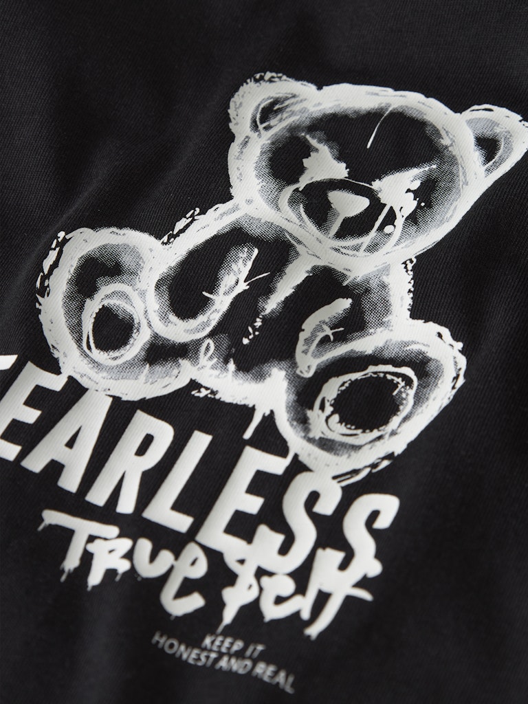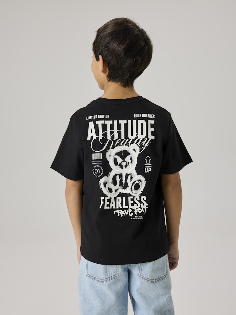 Σε καθαρό μαύρο χρώμα για εύκολους συνδυασμούς, διαθέτει μικρό print με teddy μπροστά και εντυπωσιακό σχέδιο πίσω με graffiti-style στοιχεία και typography “ATTITUDE”. Ιδανικό για αγόρια που θέλουν κάτι διαφορετικό και μοντέρνο στην καθημερινότητά τους.