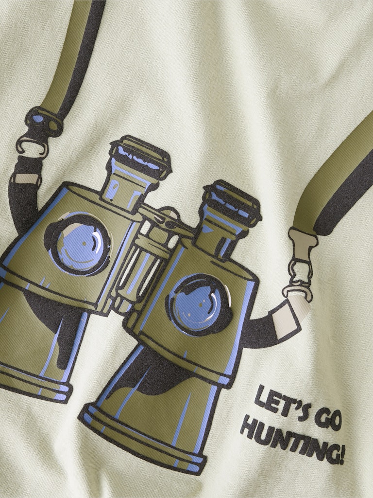 Ένα παιχνιδιάρικο t-shirt που φέρνει την περιπέτεια στην καθημερινότητα! Το παιδικό t-shirt NAME IT σε χακί απόχρωση ξεχωρίζει με το ιδιαίτερο print που δημιουργεί την αίσθηση ότι το παιδί φοράει κιάλια, μαζί με το μήνυμα “Let’s Go Hunting!” που δίνει fun outdoor χαρακτήρα.