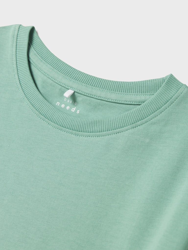 Ένα απαραίτητο basic μπλουζάκι σε φρέσκο πράσινο της μέντας, ιδανικό για κάθε καθημερινή εμφάνιση. Το κλασικό του κόψιμο και η ανάλαφρη αίσθηση του βαμβακιού το καθιστούν αγαπημένο item για μικρά αγόρια που αγαπούν την άνεση και το χρώμα.