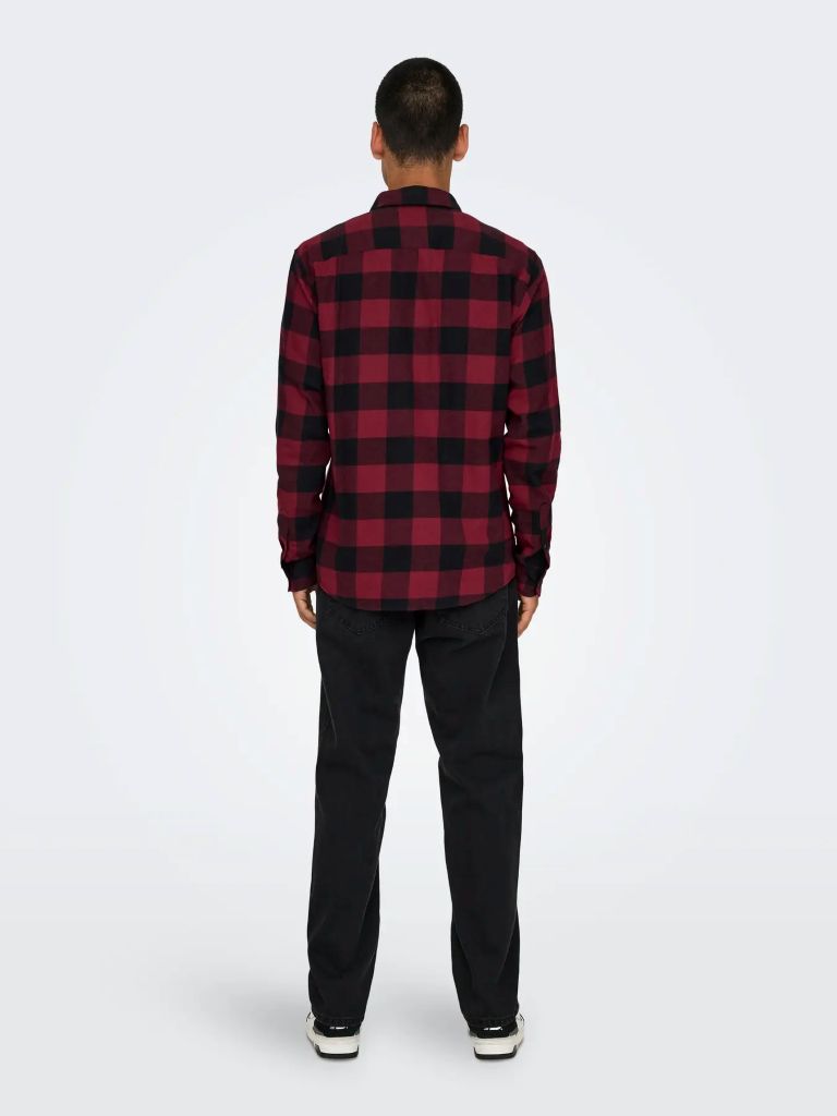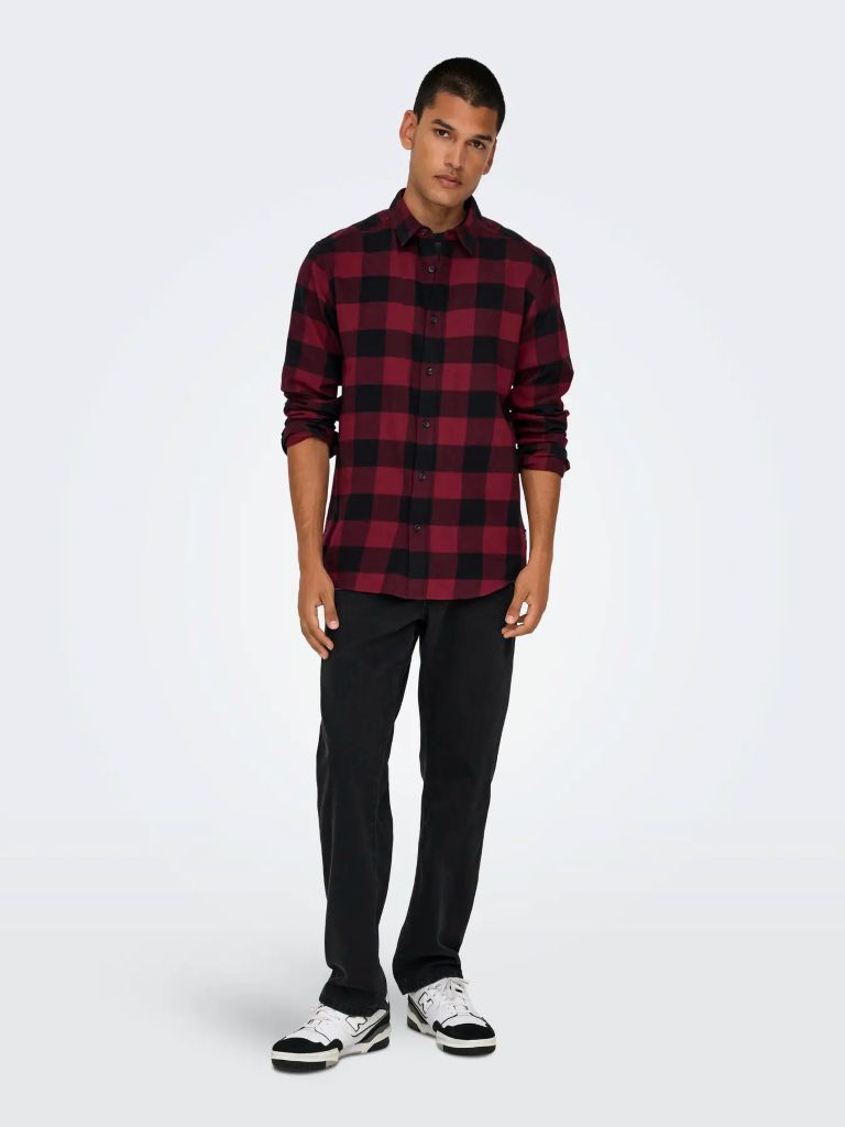 Το ανδρικό καρό πουκάμισο ONLY & SONS σε κόκκινο και μαύρο χρώμα είναι ένα διαχρονικό κομμάτι που συνδυάζει κλασικό στυλ με μοντέρνα casual αισθητική. Το έντονο καρό μοτίβο δίνει χαρακτήρα στο outfit, ενώ η άνετη γραμμή το καθιστά ιδανικό για καθημερινή χρήση.