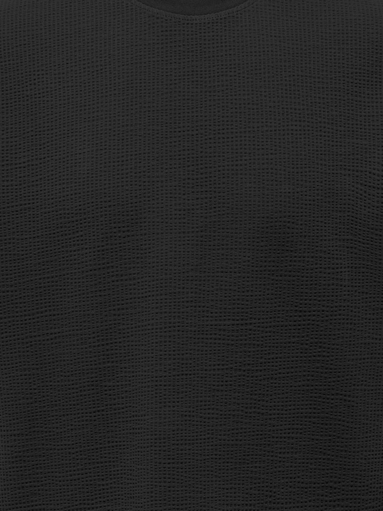 Το ανδρικό t-shirt ONLY & SONS σε μαύρη απόχρωση ξεχωρίζει χάρη στην ιδιαίτερη ανάγλυφη υφή του υφάσματος, που προσθέτει βάθος και χαρακτήρα σε ένα κατά τα άλλα minimal σχέδιο. Η καθαρή γραμμή και η διακριτική αισθητική το καθιστούν ιδανικό για κομψά casual outfits.
