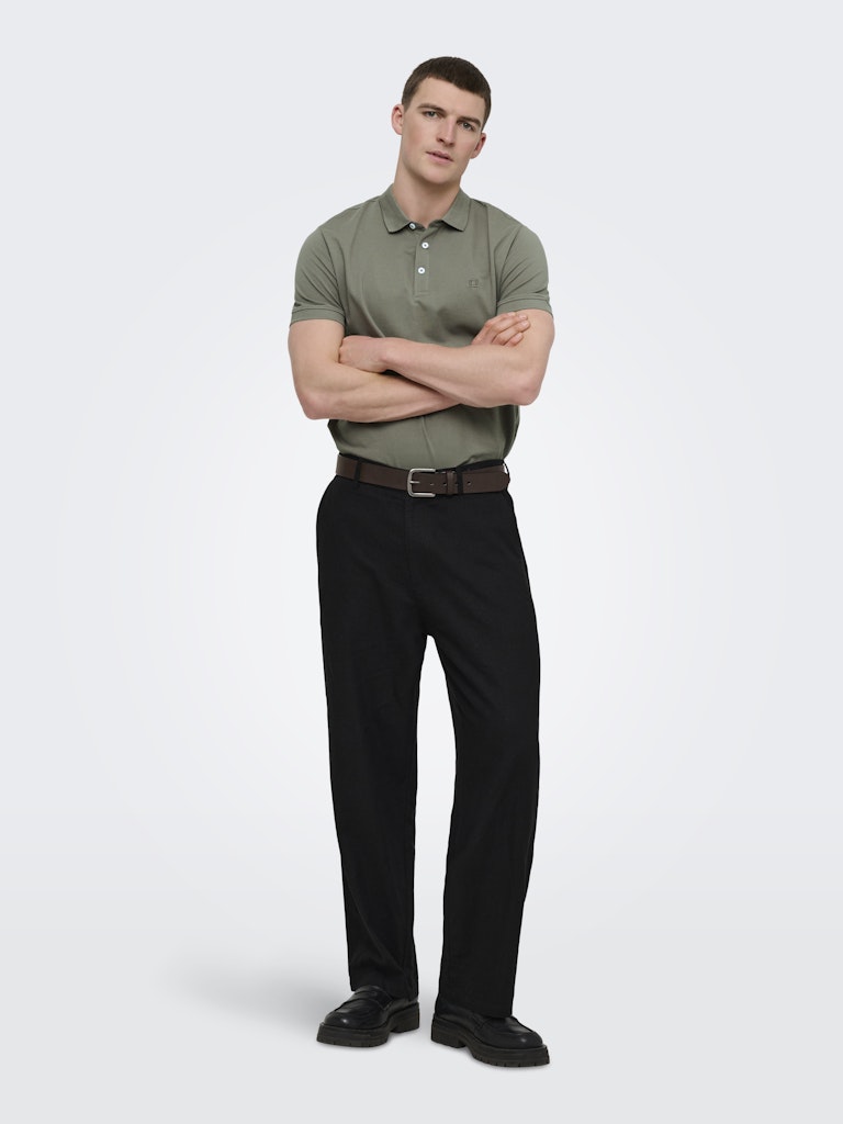 Το ανδρικό polo μπλουζάκι ONLY & SONS σε χακί απόχρωση αποτελεί μια διαχρονική επιλογή για κομψά και άνετα καθημερινά outfits. Ο minimal σχεδιασμός του συνδυάζεται με το κλασικό γιακά polo και πατιλέτα με κουμπιά, δημιουργώντας ένα κομμάτι που ισορροπεί ιδανικά ανάμεσα στο casual και το smart casual στυλ.