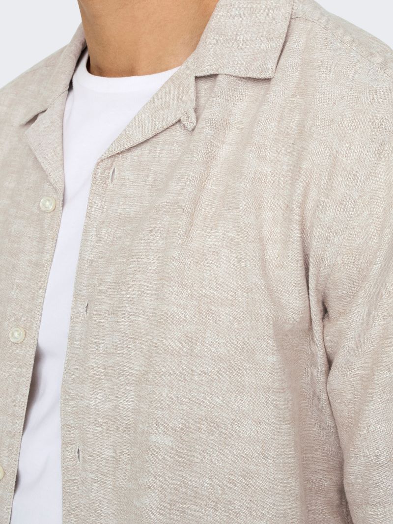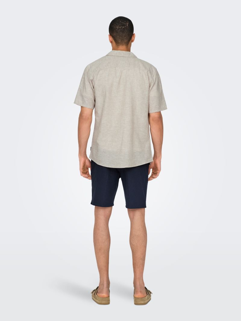 Ανανεωμένο και δροσερό, αυτό το κοντομάνικο λινό πουκάμισο της ONLY & SONS είναι το απόλυτο καλοκαιρινό must-have. Με ανοιχτό γιακά τύπου camp και ανάλαφρη αίσθηση, αποπνέει άνεση και στυλ.