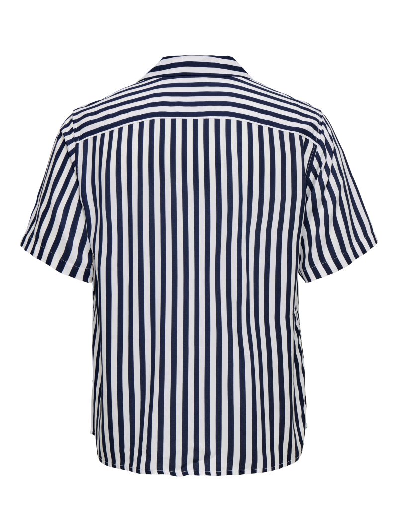 Ένα διαχρονικό κομμάτι που επαναπροσδιορίζει το summer cool. Το striped πουκάμισο της ONLY & SONS με κάθετες ρίγες σε navy και λευκό χρώμα προσφέρει κομψότητα, φρεσκάδα και ανάλαφρη υφή. Η regular γραμμή του και η 100% βιώσιμη βισκόζη το κάνουν ιδανικό για ζεστές μέρες.
